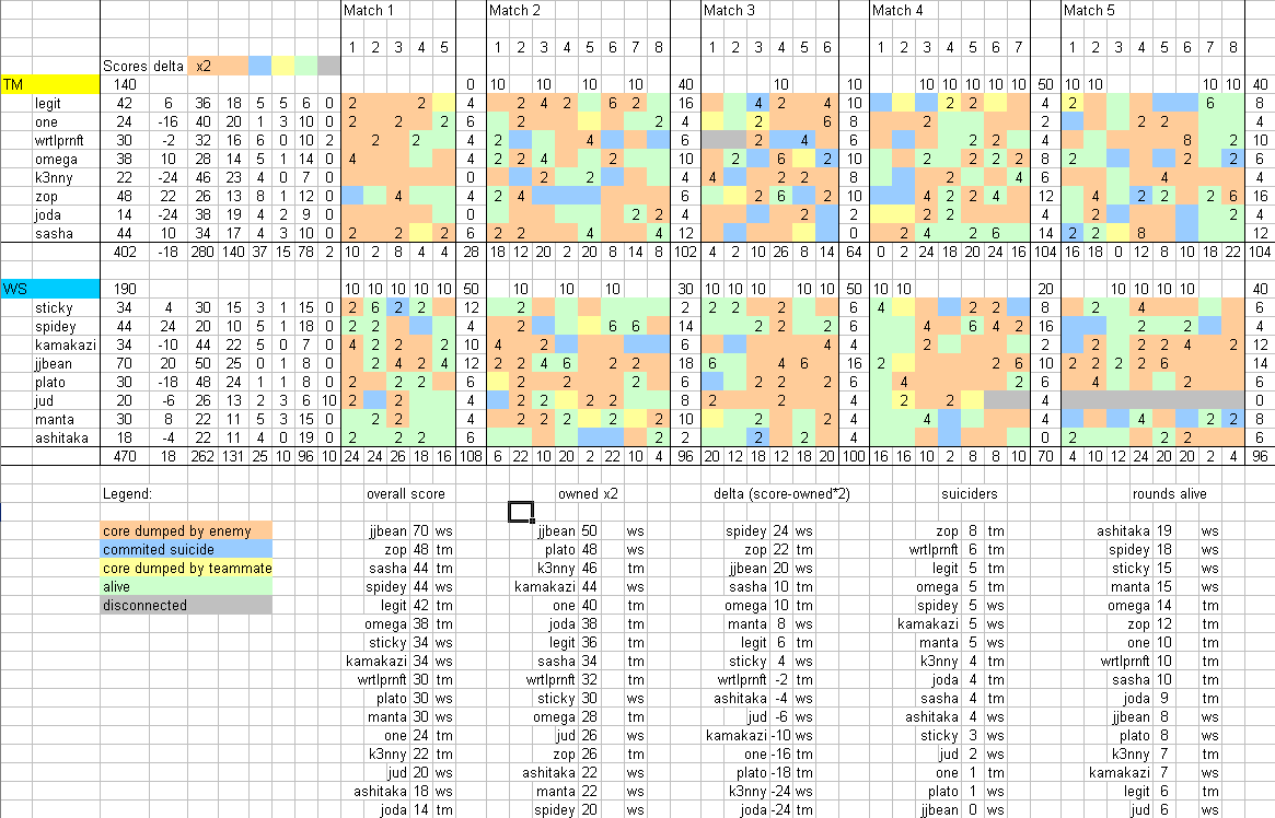 z-man wrote:Here they are. Console log with sasha's IP snipped and scorelog.txt. Just the final, the semifinal sort of did not take place. Gratz Monkeys!