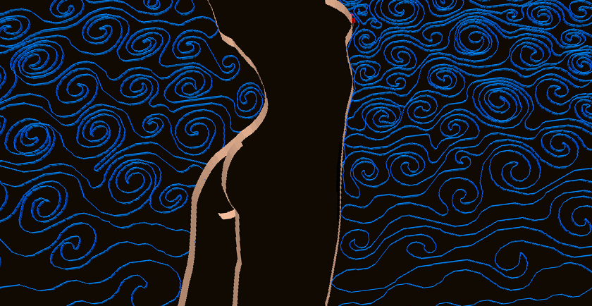 However, I didn't want to totally exclude all the game aspects from this work. Cycle walls themselves have a vibrant, electric feel to them, which I wanted to include. Also, I thought the classic Tron "spiral of death" could be used as an attractive pattern. In this piece, I try to transform the death spiral from anxious to soothing.