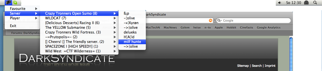I programmed an Armagetron Monitor. There you can see fastly who is online. MoniTron is in the tray. So you don't lose space on your desktop. You can add easily server and player favourites. When you choose a server or player you can connect directly to this server. But you need Armagetron 0.3.0. In MoniTron.ini you can set all the features.
