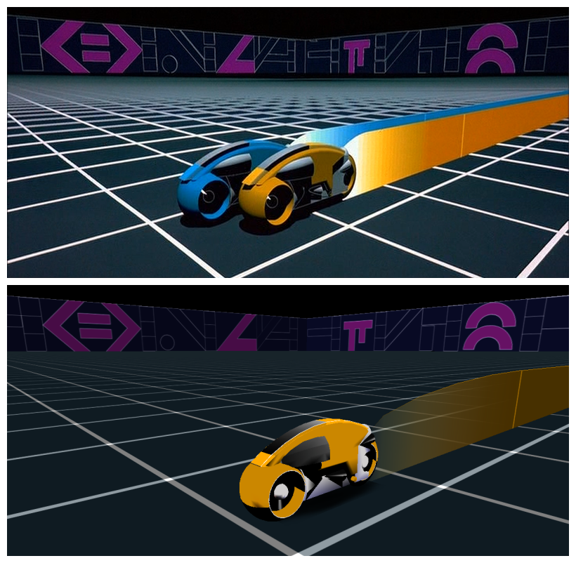 So, yeah there you go. Let me know how accurate you think the colors are and if they can be improved. The crux of the matter is that Armagetron doesn't have the proper lighting effects to render the grid in that the movie had.