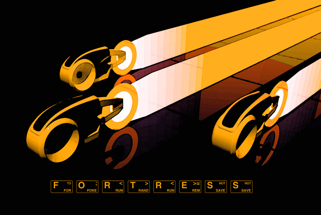 Now, I have to say I really don't like the fortress moviepack floor. The walls are all right and don't disturb regular play, but the colored, long lines on the floor are far too easy to confuse with cycle walls (or rather, cycle walls can conveniently hide between them). I also don't like how it looks as the menu background. Of course, we can hardcode that one to black.
