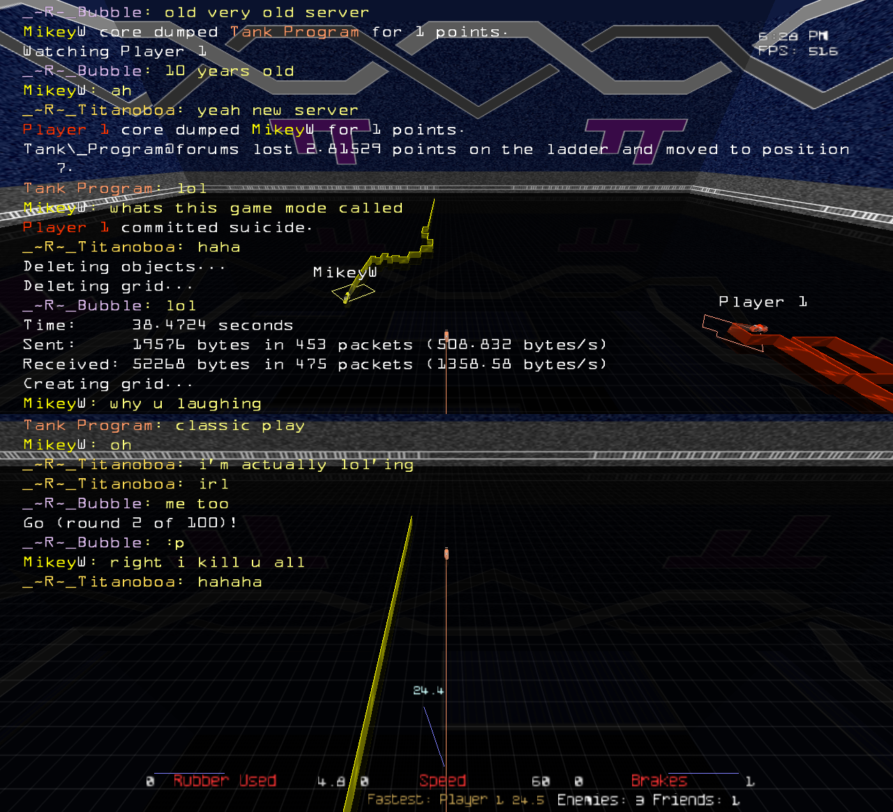 As for me; here is a funny glitch. When the round started; tab-score told me that everyone was dead except Buddha Ant (Actually everyone was alive including myself). Then I took a look at the arena and realized it showed Buddha Ant's tail on the mini map as well as some random green tail. This green tail was not visible in the arena. -_-