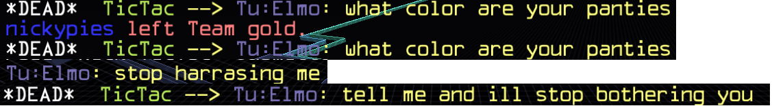 Mkay1 wrote:He was spamming me 100 times saying i like deepthroat + other explitives about a week ago.