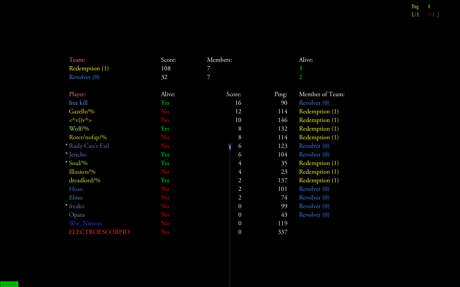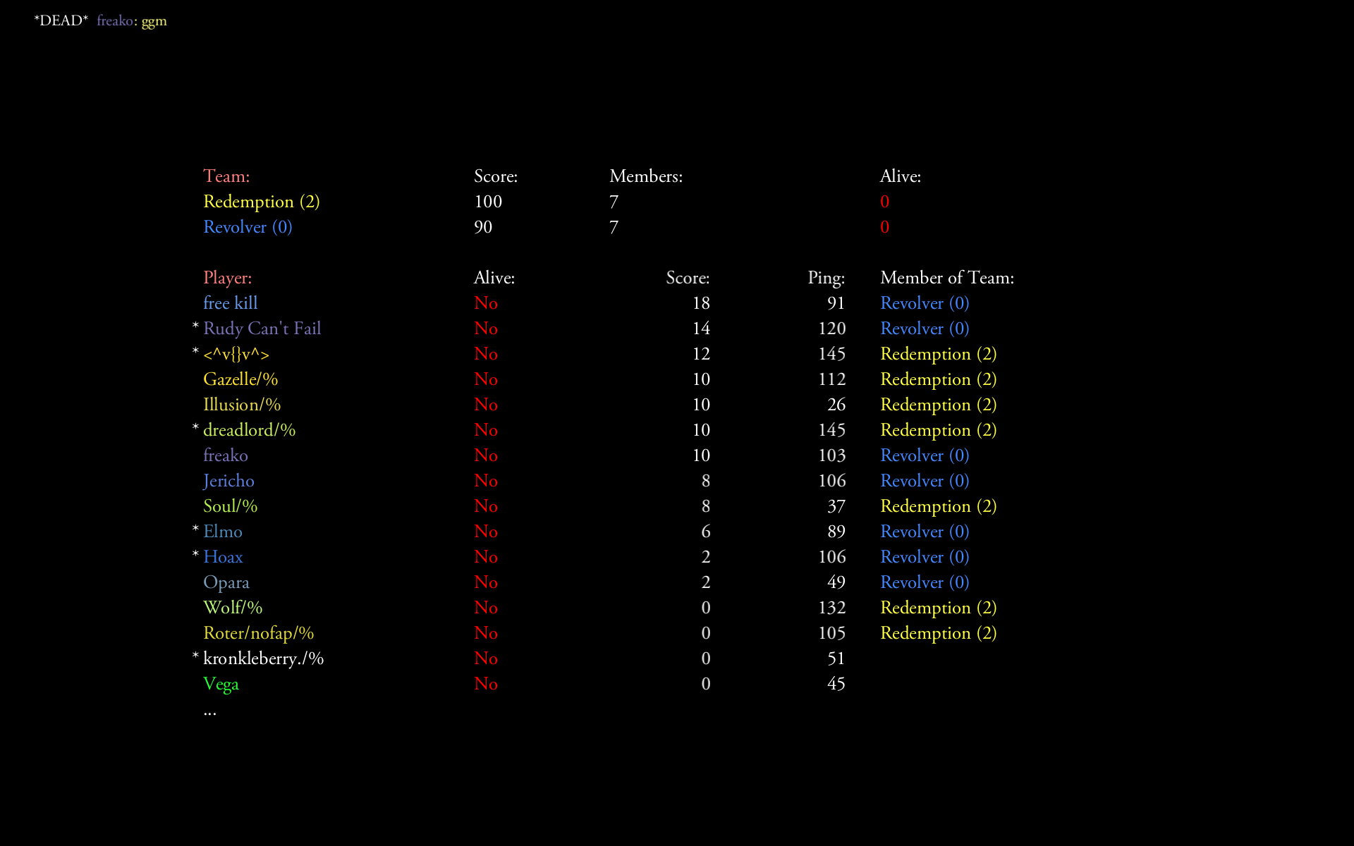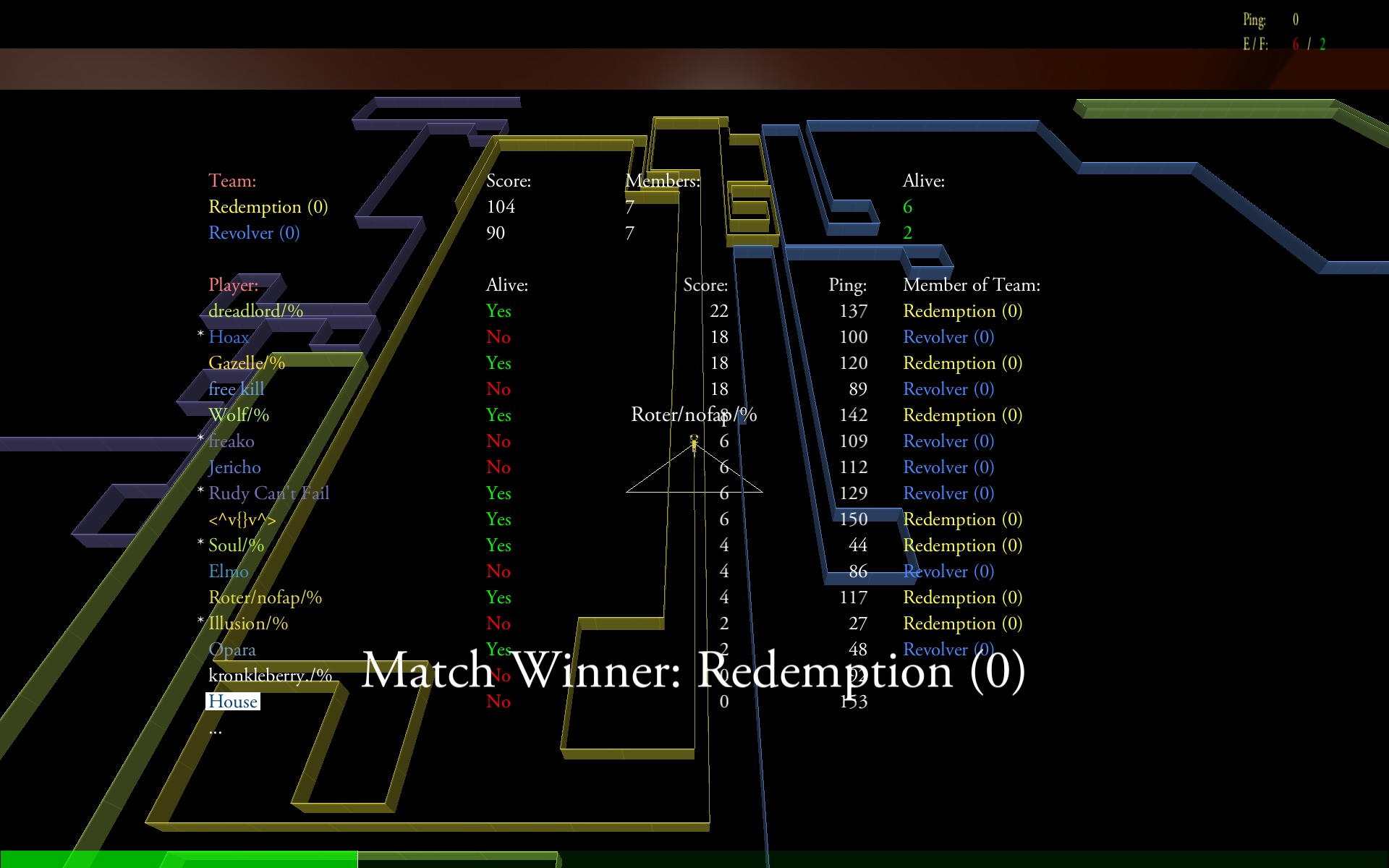 Big thanks to Durka for putting in so much effort to set this up and stick with it. There were very few and minor speedbumps along the way. And of course, the usual thanks to all those who provided servers for the tournament—always much appreciated.