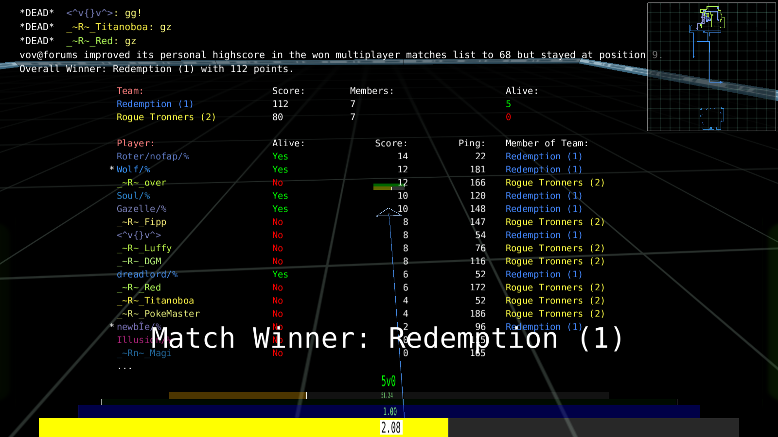Big thanks to Durka for putting in so much effort to set this up and stick with it. There were very few and minor speedbumps along the way. And of course, the usual thanks to all those who provided servers for the tournament—always much appreciated.