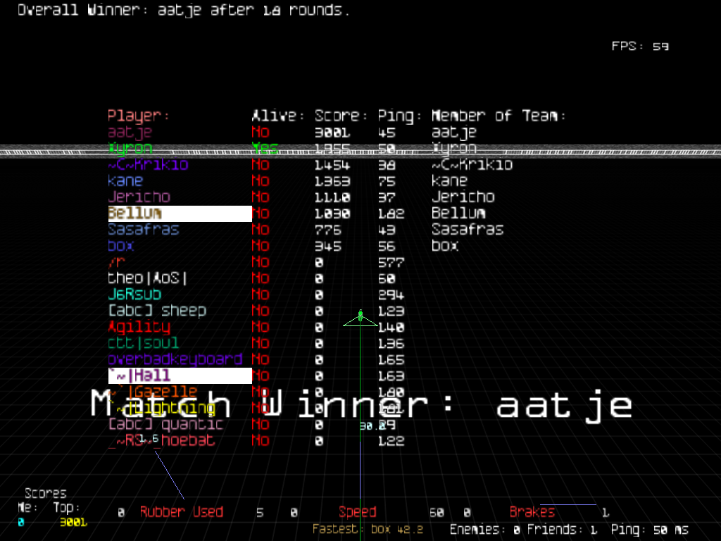 I started out really good. In the first part of the match (probably until round 6-7) me, wap, xyron and gazelle were fighting for first place. After that I really lost it. I was tunneling in random places, dying from stupid mistakes etc. After some time I think there was a gap between wap and gazelle, fighting for first, xyron who was in 3rd and another gap between him and me in 4th. I got kinda upset from these mistakes so I was swearing a lot :d In last part of the match I started playing better and managed to catch xyron and overtake him in last round. I don't really know what everyone else did because I was just focused on 1st place. Gazelle did really well, he played constantly good throughout the match (I noticed he had fast reaction time). He managed to kinda secure his win with one round before the end and finally he won. All in all, the final match was fun, I did play much better than previous games, but not as good as I expected. GZ to Gazelle for winning and ggs everyone