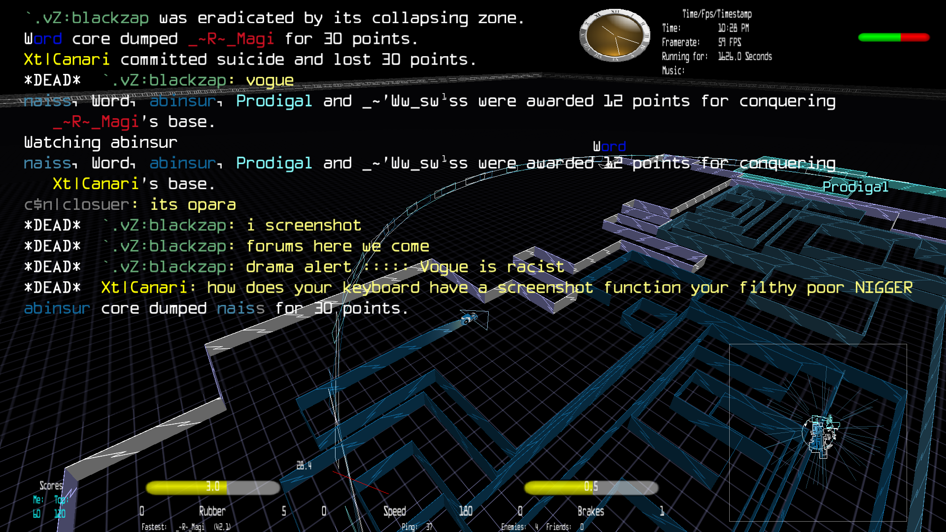 @Gazelle how else can I prove it's her, she was playing in the same server for an hour or so before I joined, She was playing dogfight under the alias of just 'V' before that with me and Rx.Mose. She changed her name to XT|Canani or whatever it was after I mentioned Flex, she began to say all this racist shit, look at the first screenshot haha