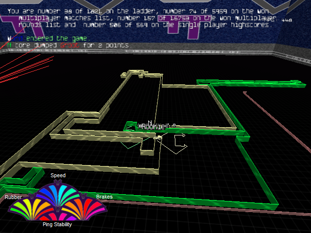 Thanks, I was sure you'd come up with something that looks better! As for the animation of my proposal, I thought maybe it's possible to just switch between a few transparent .pngs to achieve that effect, but I don't know either whether Armagetron can do that and how fast that image can be loaded so it won't show up too late for the player. Then the changing fill of rubber/brake/speed bars and arrows would have to be put in a layer behind that, of course.sinewav wrote:Brilliant, really. I don't believe the cockpit can handle animation or sprites, but the general concept is great. I sketched up a version below. The cycle itself can be the speed gauge and fill up with color. In my drawing, the rubber meter fills as the cycle approaches the wall, narrowing the space between the bike and needle. Really, this is what rubber does at a network level. It's an artificial slowing of the cycle, but on the screen the bike appears stalled.