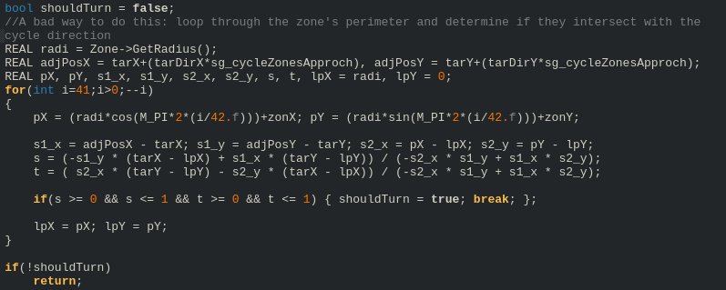 if distance < zoneDetectRange then turn