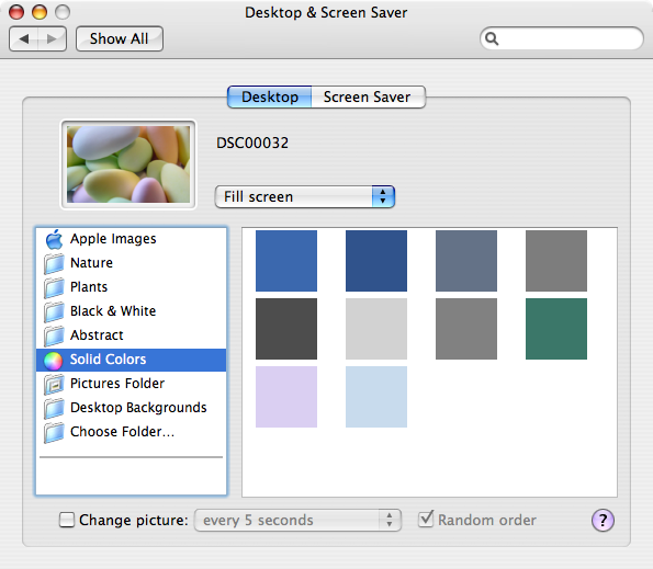 Here is a picture of Apple's supplied solid color desktop background pictures. Looks like there are 10, right? Well, today I found out about the secret 11th solid color desktop background. Can you find it?