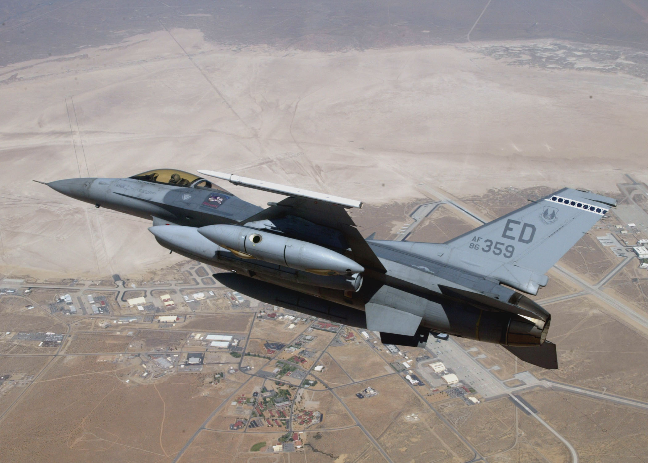 1) The F-117A Nighthawk Stealth Fighter, accompanied by two F-16 Fighting Falcons