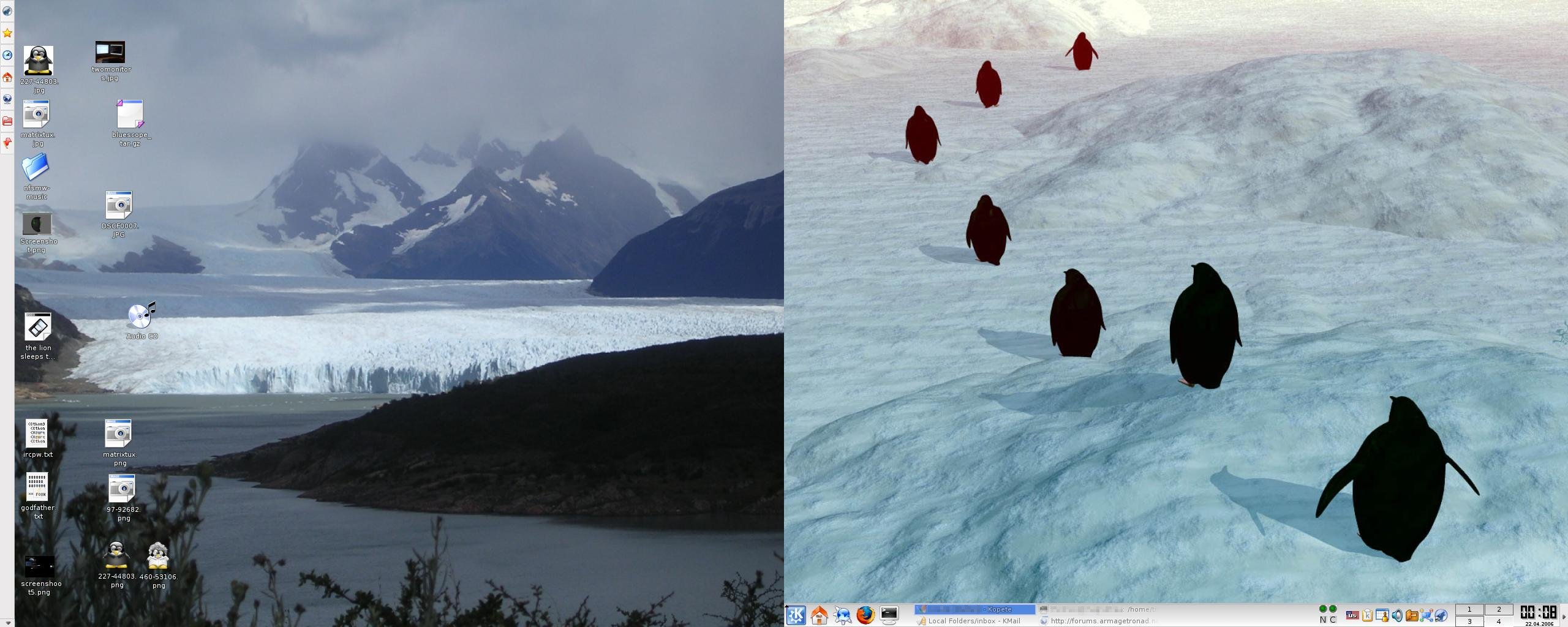 desktop 3: left bg included in KDE 3.5, right something in Tibet (kde-look.org)