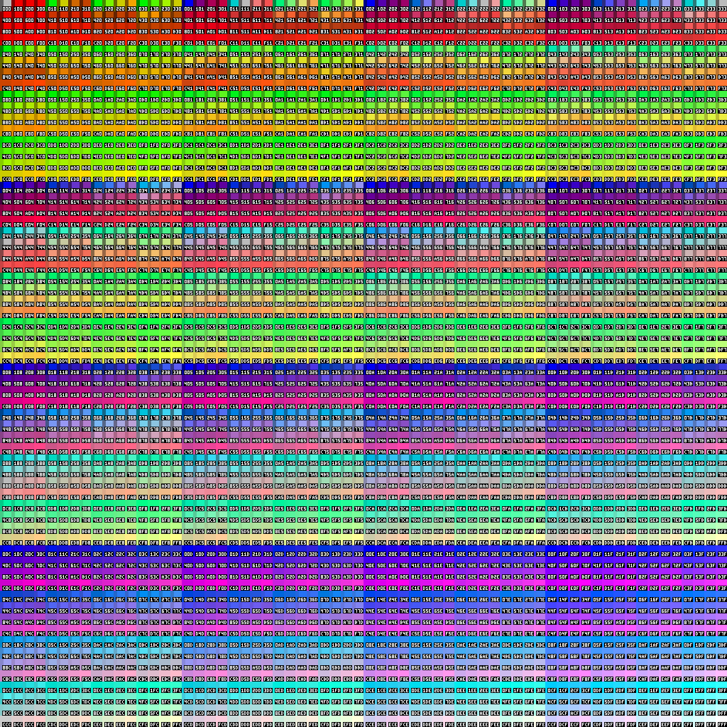 You don't have to understand the inner workings to use it. Just pick a color and enter it in the game. iceman's only has a limited selection of colors (though it does have a few overflowed colors - in fact that's all it has), and isn't as accurate. Mine was meant to be more complete, but not huge, so I had to make the cells very compact.