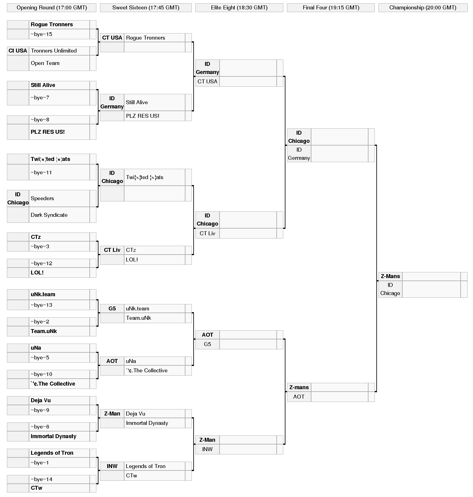 Flex is wrong about Team unknown also being incomplete. The revision he linked to was done at 3:55 GMT on the cutoff day. Here is the last revision of the Challenge Board before the brackets were set.