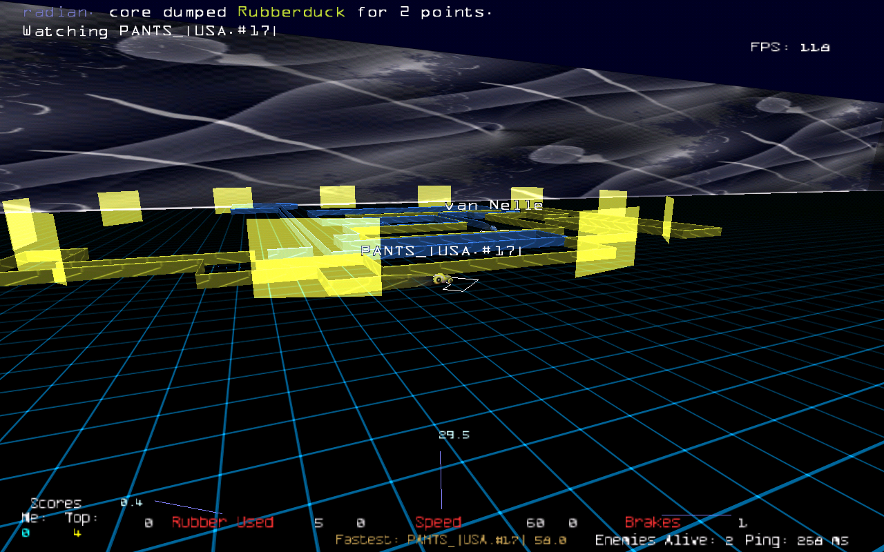 Actually, I play with the floor turned off, meaning it's black, which is why I have such trouble seeing dark colors. So, that'd be neither here nor there in my specific case, heh.Lucifer wrote:Um, a bright floor will help people like Silly who have a hard time seeing dark trails....