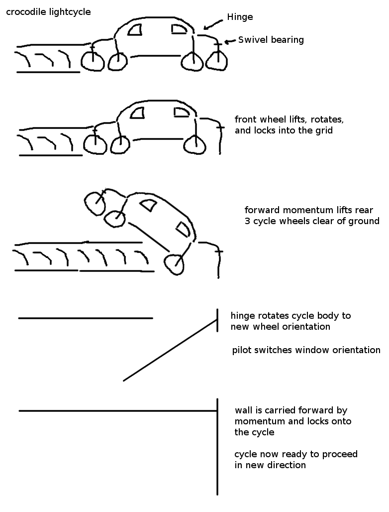With gravity and physics yeah. No crawling. I based it slightly on the crocodile rail engines they use in mountains. At least that's what the picture reminds me of.Word wrote:I am no engineer but do you mean that it is possible to build this when you think about gravity and all? and each turn would last around 2-3 seconds just to show the player the way the cycle can move from one wheel to another.