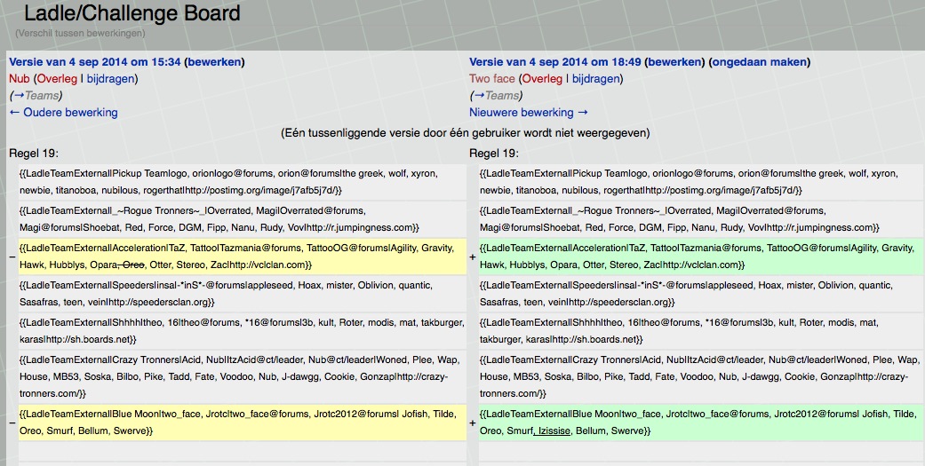 two_face does not technically have the authority to remove Oreo from Accel's team list. However, Oreo was also signed up under Blue Moon and when I look at this I get the feeling he is not playing for Accel and this current placement is Oreo's correct position on the Challenge Board . Sloppy editing yes, but there were many sloppy edits this month because players are hopping teams like crazy. Suspicious, no, not unless Oreo or Taz comes forth to complain.*16 wrote:Isn't this a bit suspicious?