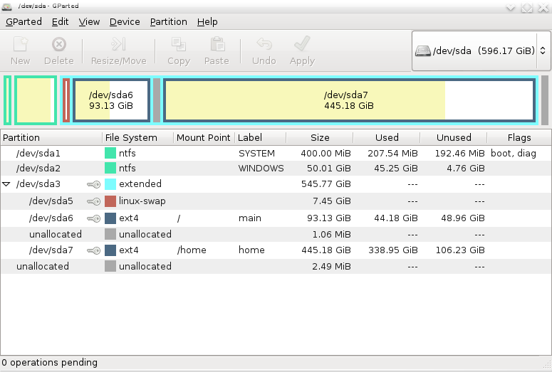 And sda5-10 are all "logical partitions" within the Extended partition (something else I just looked up), yeah?