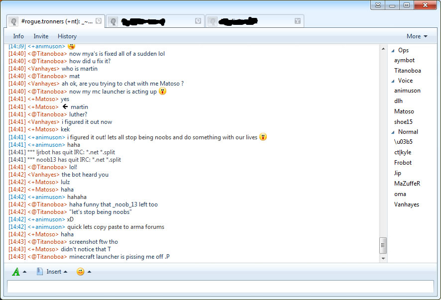 [14:41] <+animuson> i figured it out! lets all stop being noobs and do something with our lives