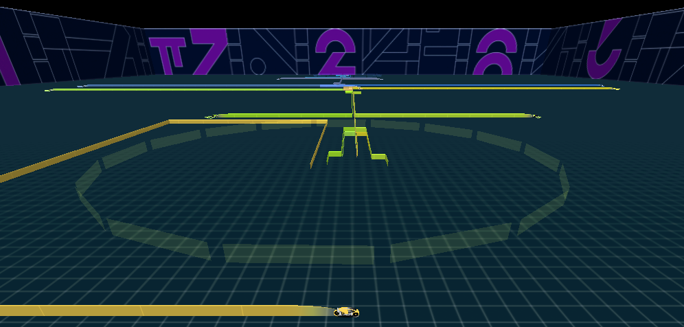 The following is me rambling about art, so ignore this if you just came for the moviepack. The textures are so wide you can't fit them all on a 500x500 grid, so use a minimum of size factor 1. I spent a lot of time getting the colors right. I took dozens of screenshots of the movie, then took an average of the colors in different scenes since there is considerable variance in brightness and temperature. After I locked down the base colors, I pushed them around until the contrast between the trails (brighter), floor and rim felt good. It is not good enough to be accurate, but it must also be playable. There movie hides a good 25%-30% of the grid from the camera, so this is an interpretation and not to scale. I, along with ColdCutz above, were able to recreate part of the rim wall that is obscured in the movie. While he put this section in his unreleased moviepack, I opted to eliminate it and took liberties with the size and spacing of other elements -- a compromise to make the moviepack more workable for me.